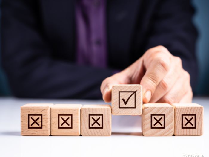 A.「総額」ではなく、「㎡あたりの単価」「保証期間」を重視してください。単価が適正であれば、見積もり書全体の信頼性が高まります。また、万が一のための保証期間が長く、保証内容が具体的であるかを最重要視しましょう。